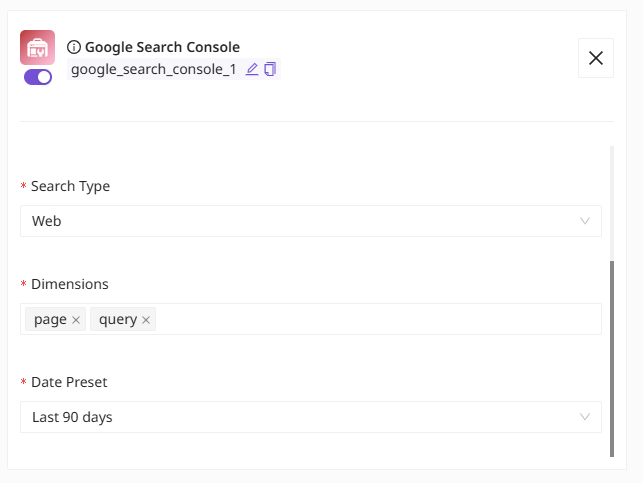 Important: You can only pull Google Search Console data for properties your Google account has authorized access to.