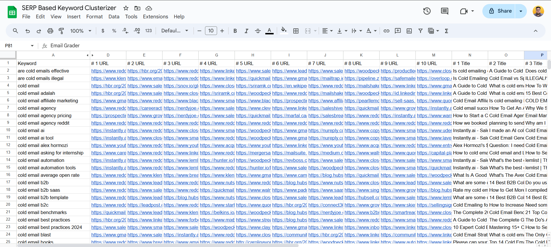 This guide will show you how to quickly and easily turn a list of keywords into neatly clustered topics based on scraping search engine results.