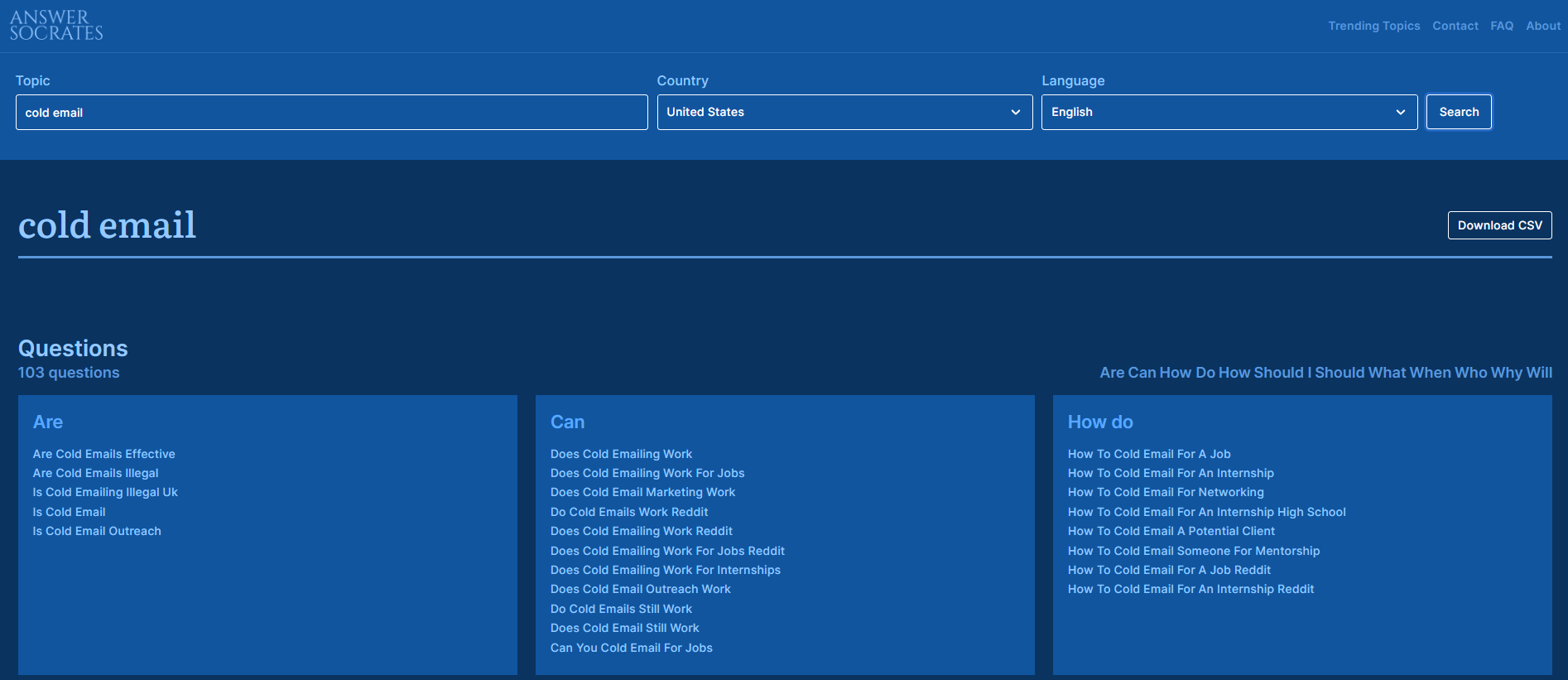 Like “Are Cold Emails Effective” and “How To Cold Email For A Job”.