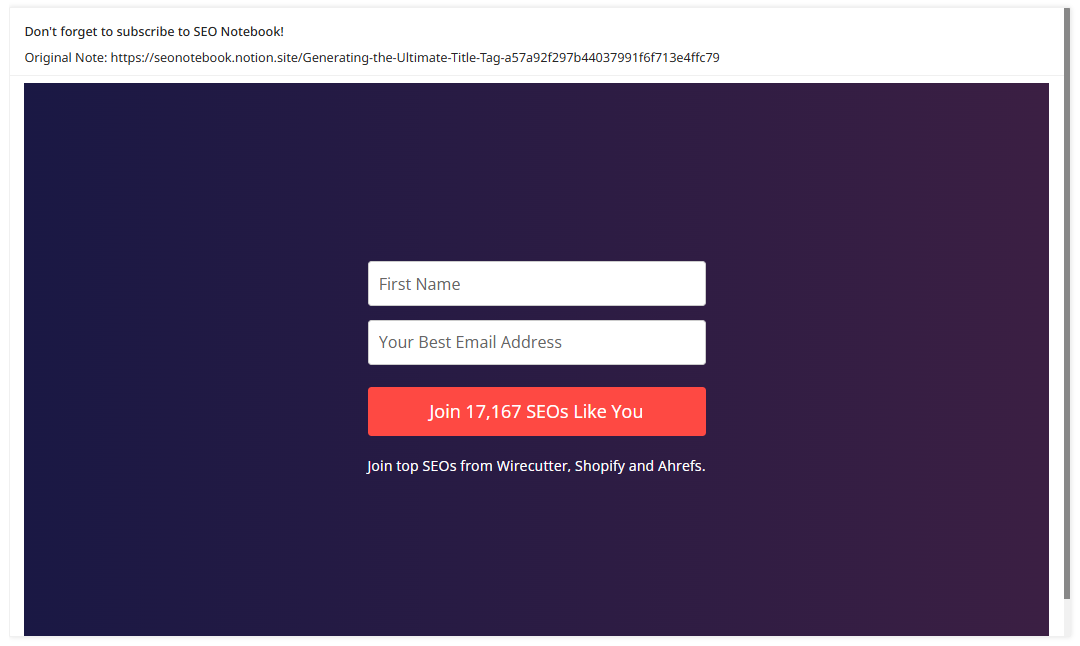 Join our group to get access to 30+ custom AI SEO apps like this one, and participate in our growing community of AI enthusiasts.